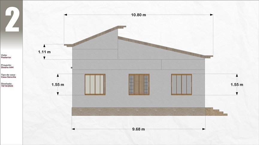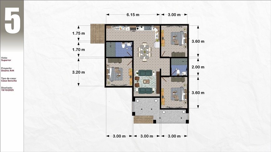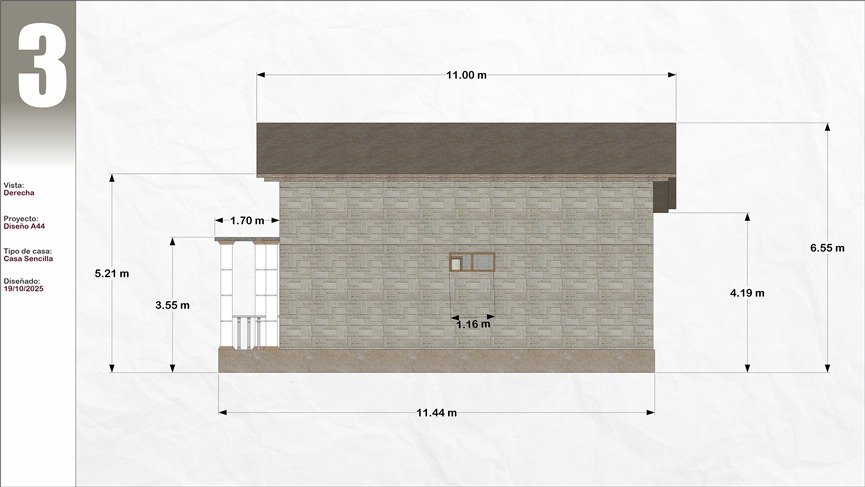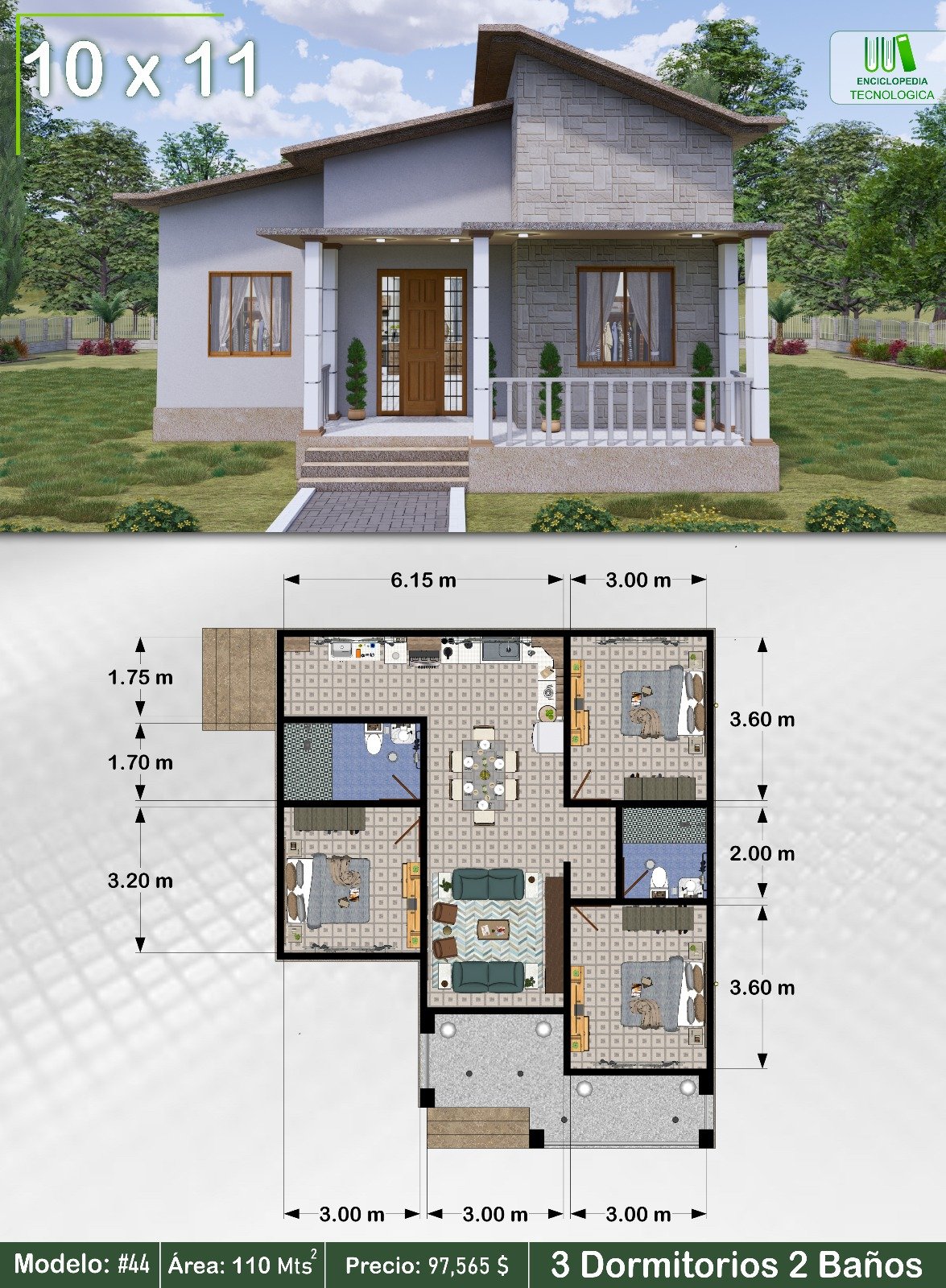 Plano de Casa 3 dormitorios 2 baños 10x11M Modelo #44