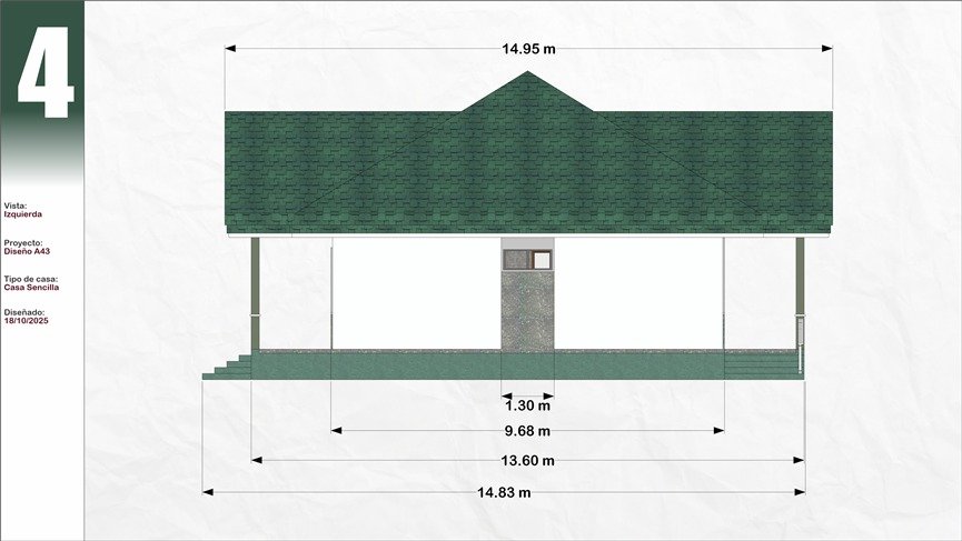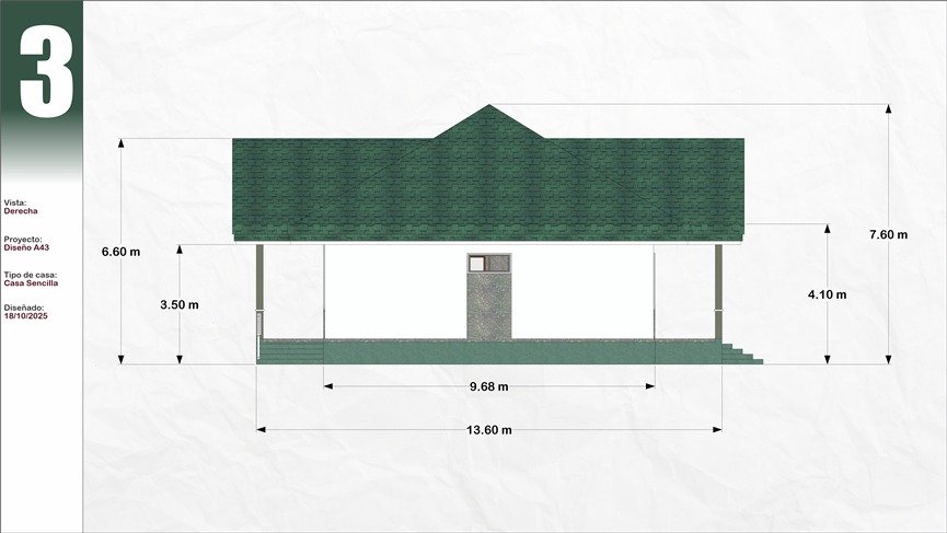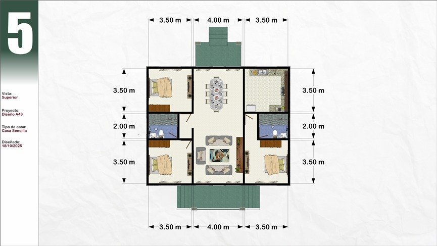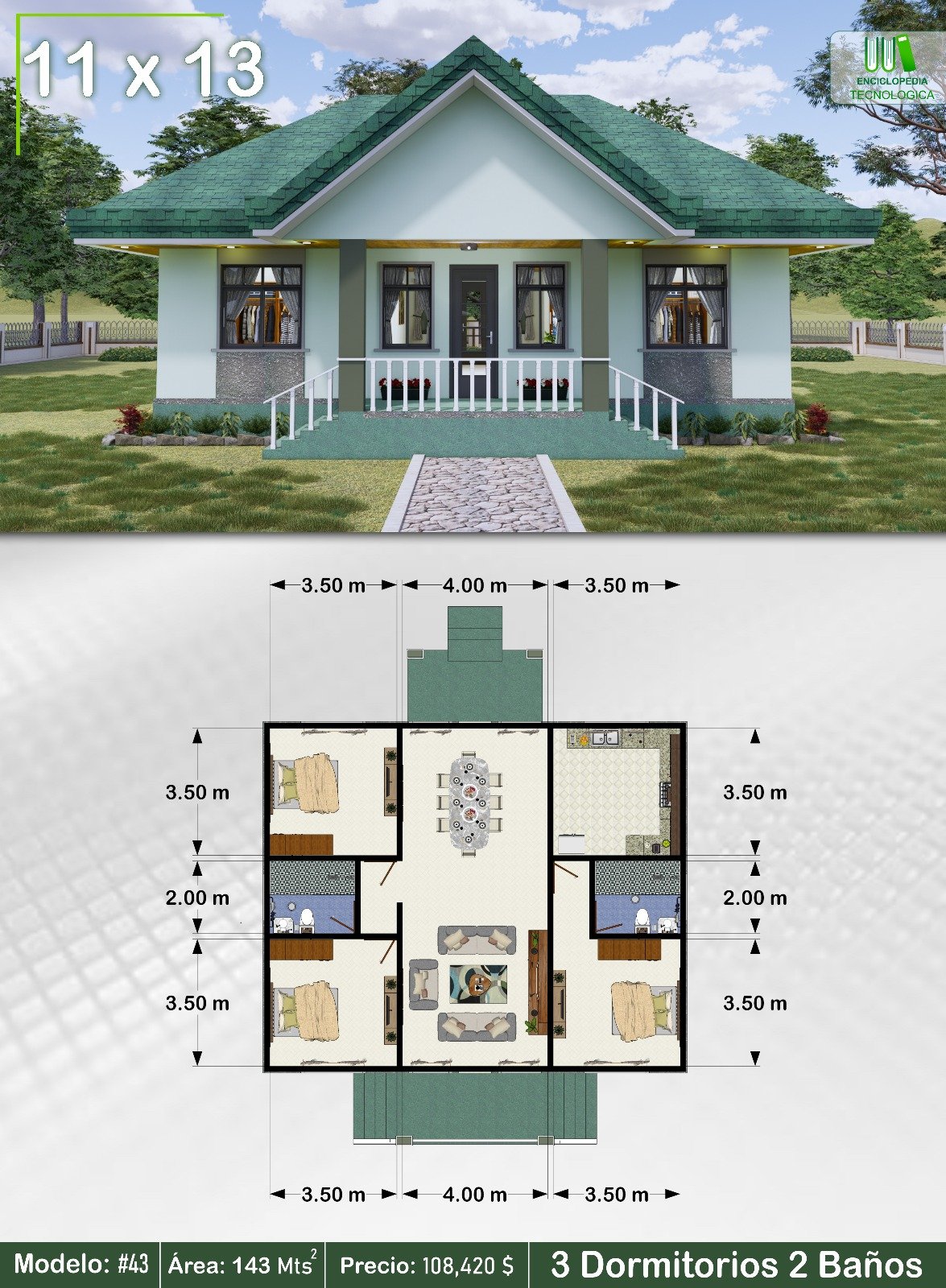 Plano de Casa 3 dormitorios 2 baños 11x13M Modelo #43